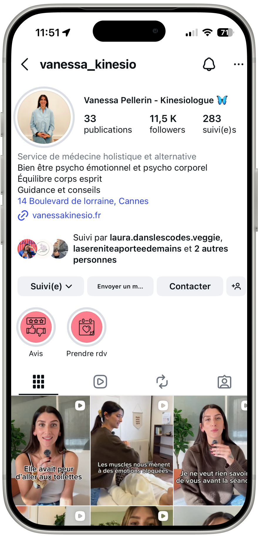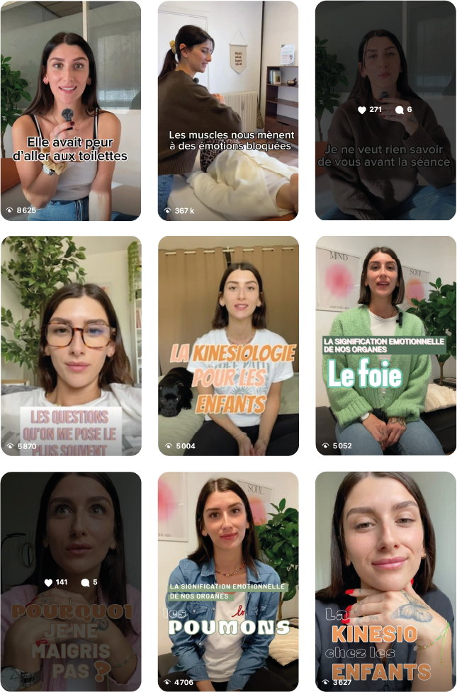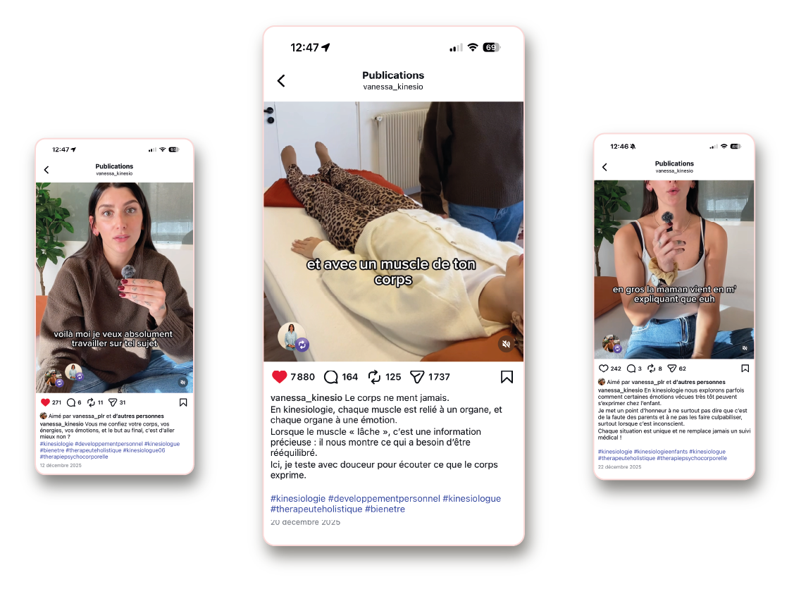 L’enjeu était de développer sa présence sur Instagram pour faire découvrir la kinésiologie à un public en quête de bien-être. L’objectif: créer un univers visuel qui lui ressemble, pour instaurer une proximité sa communauté, et de, in fine, obtenir des rendez-vous.