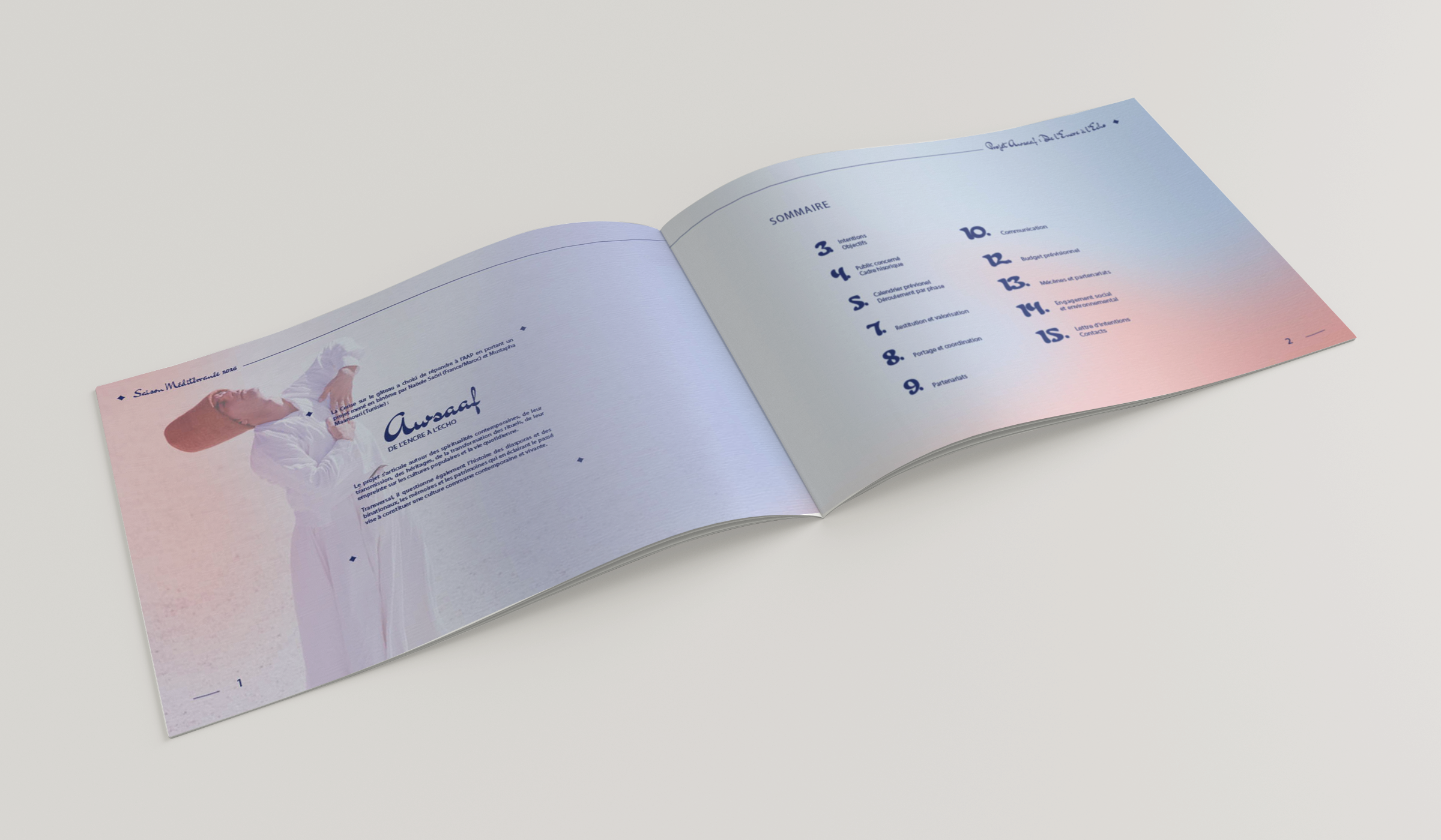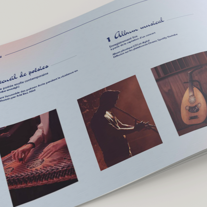 L’enjeu était de concevoir un dossier de présentation destiné à la recherche de partenariats et de financements. Le défi était de traduire visuellement la "douceur spirituelle" du projet et de rendre palpables les liens sensibles qui unissent ces différentes cultures.